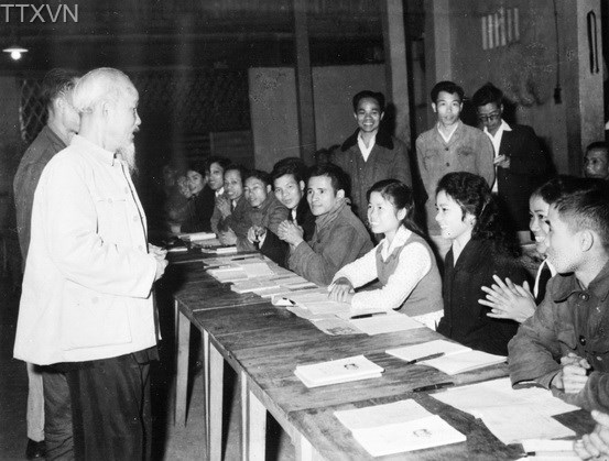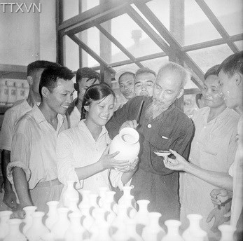 Chủ tịch Hồ Chí Minh thăm Hội nghị phổ biến Nghị quyết của Bộ Chính trị về cuộc vận động: Nâng cao ý thức trách nhiệm, tăng cường quản lý kinh tế tài chính, cải tiến kỹ thuật, chống tham ô, lãng phí, quan liêu (Cuộc vận động ba xây, ba chống), 27/7/1963